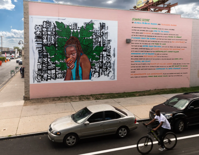 In 2022, Octavia McBride-Ahebee was commissioned by Mural Arts Philadelphia to create an original poem for a public mural that lives on a local supermarket in West Philadelphia and celebrates the rich tradition of urban gardens and fresh food in neighborhoods battling food deserts. Learn more about the project below.